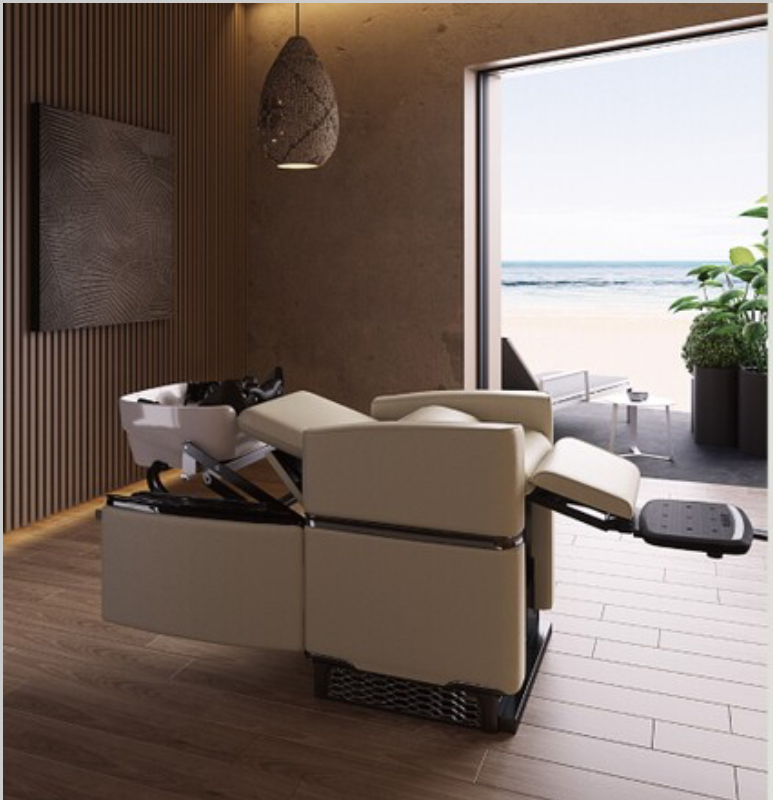 最大の特徴が、カットチェアとシャンプーボウルがワンセットになっていて、なんと椅子の下からシャンプーボウルが出てきます